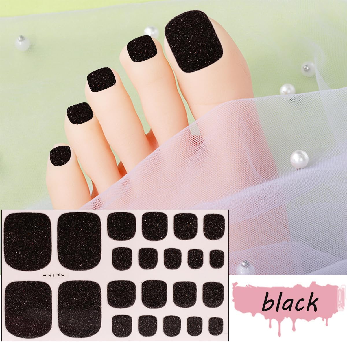 8 Sheets Glitter Toe Nail Polish Stickers Semi Cured Gel Nail Strips Red Pink Grey Blue Self-Adhesive Toenail Polish Strips Purple Black Toe Nail Stickers Full Nail Wraps for Women Nail Decoration