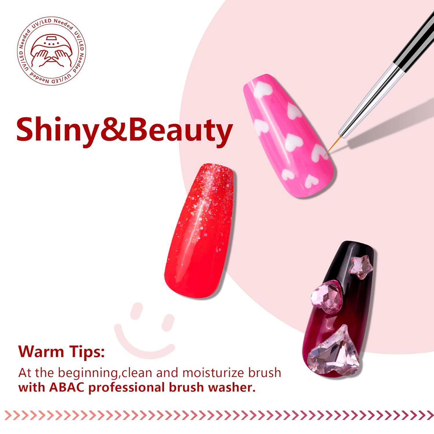 ✨Warm Tips:New brushes have a wax seal,When using for the first time,please use a brush washer to fully moisturize and soften the brush.After treating the brushes,moisturize the brushes with the right amount of brush washer before applying the gel polish,adjust the amount of gel polish and brush washer according to your needs.
