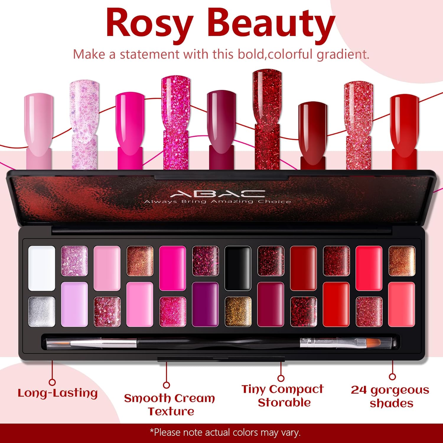 🎁Tiny but worthy:ABAC rosey beauty solid cream gel polish with new formula to make higher pigment&easier self-leveling&long lasting;The palette for easy storage does not occupy space,say goodbye to the clutter.