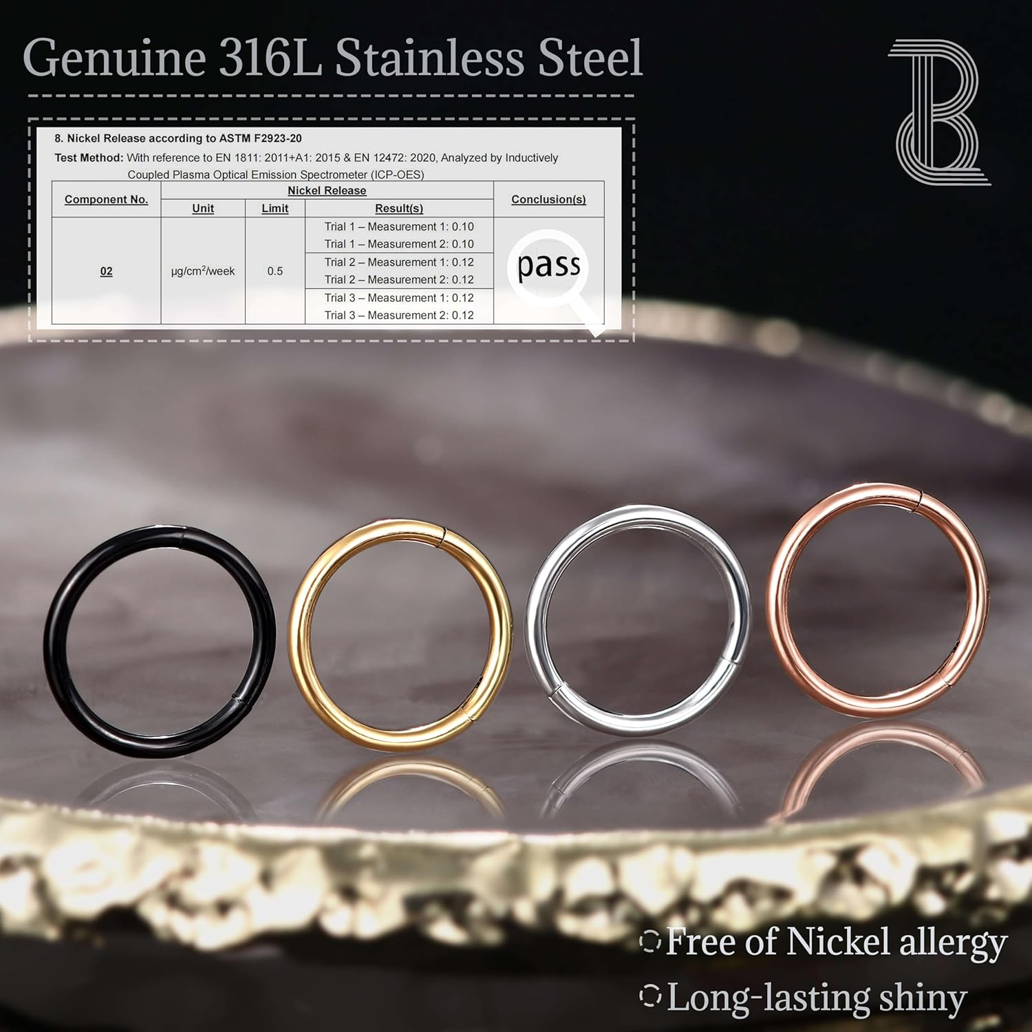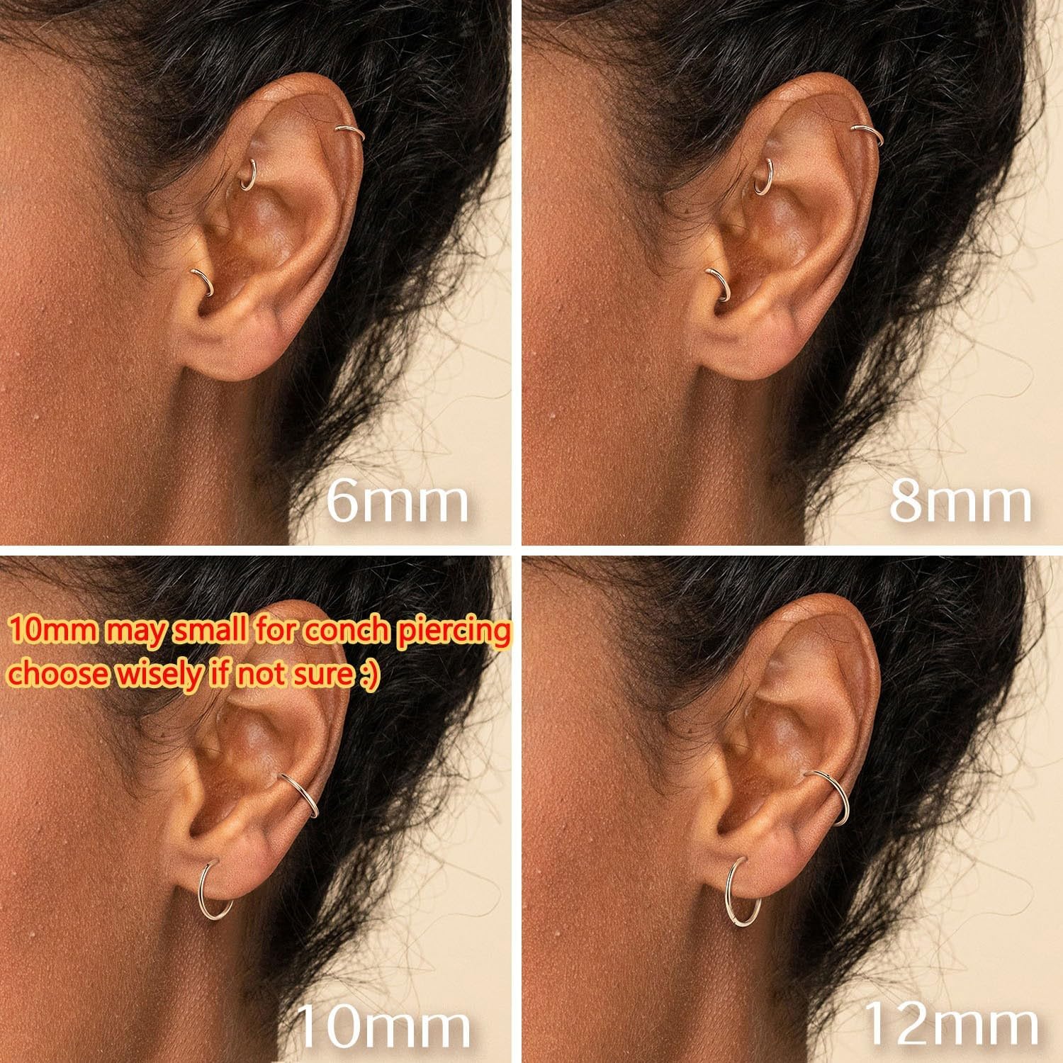BodyBonita Hinged Nose Rings Hoops - 316L Surgical Steel Seamless Nose Piercing Jewelry Hypoallergenic 20G/18G/16G/14G Septum Clicker Lip Rings Cartilage Helix Daith Conch Tragus Rook Labret Belly Button 5mm/6mm/7mm/8mm/9mm/10mm/11mm/12mm-Gold/Silver/Black/Rose Gold/Blue/Rainbow