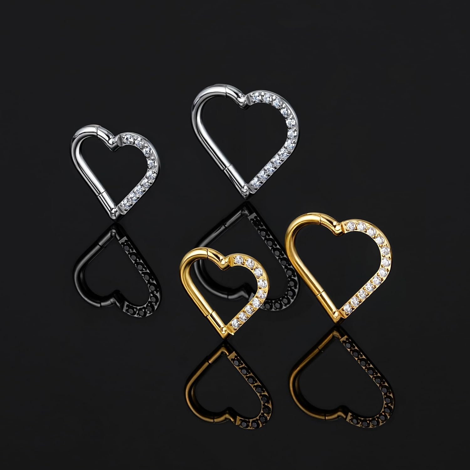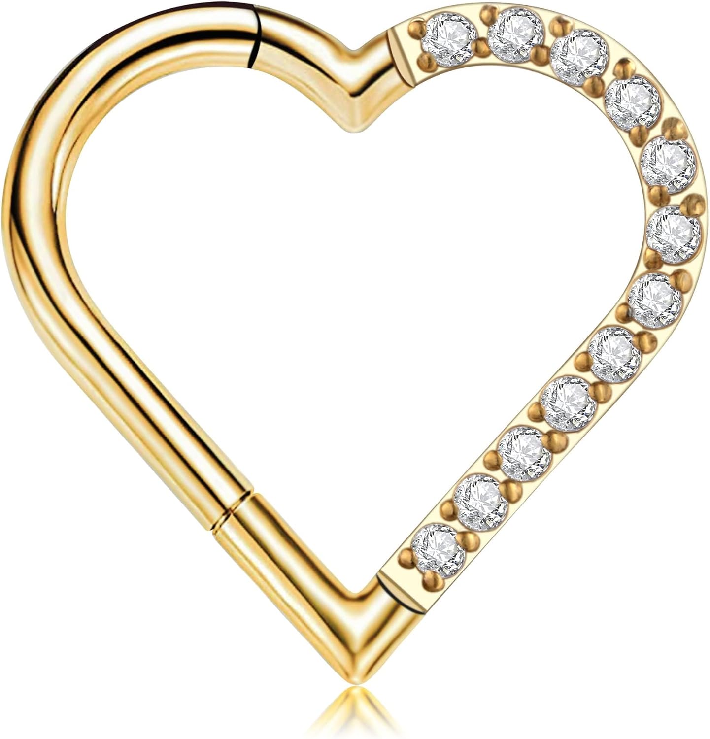 FINE4U Heart Daith Piercing Jewelry 16G 8mm 10mm Left Ear - ASTM F136 Titanium Clicker Daith Earrings for Women & Men