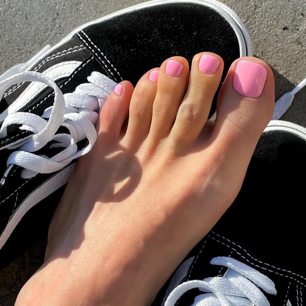 KQueenest Rose Pink Press on Toes Nails Short Square,Solid Fake Toe Nails Glue on,Glossy Toe Press on Nails For Women Girls,Natural Gel ToeNails Acrylic for Decoration 24Pcs
