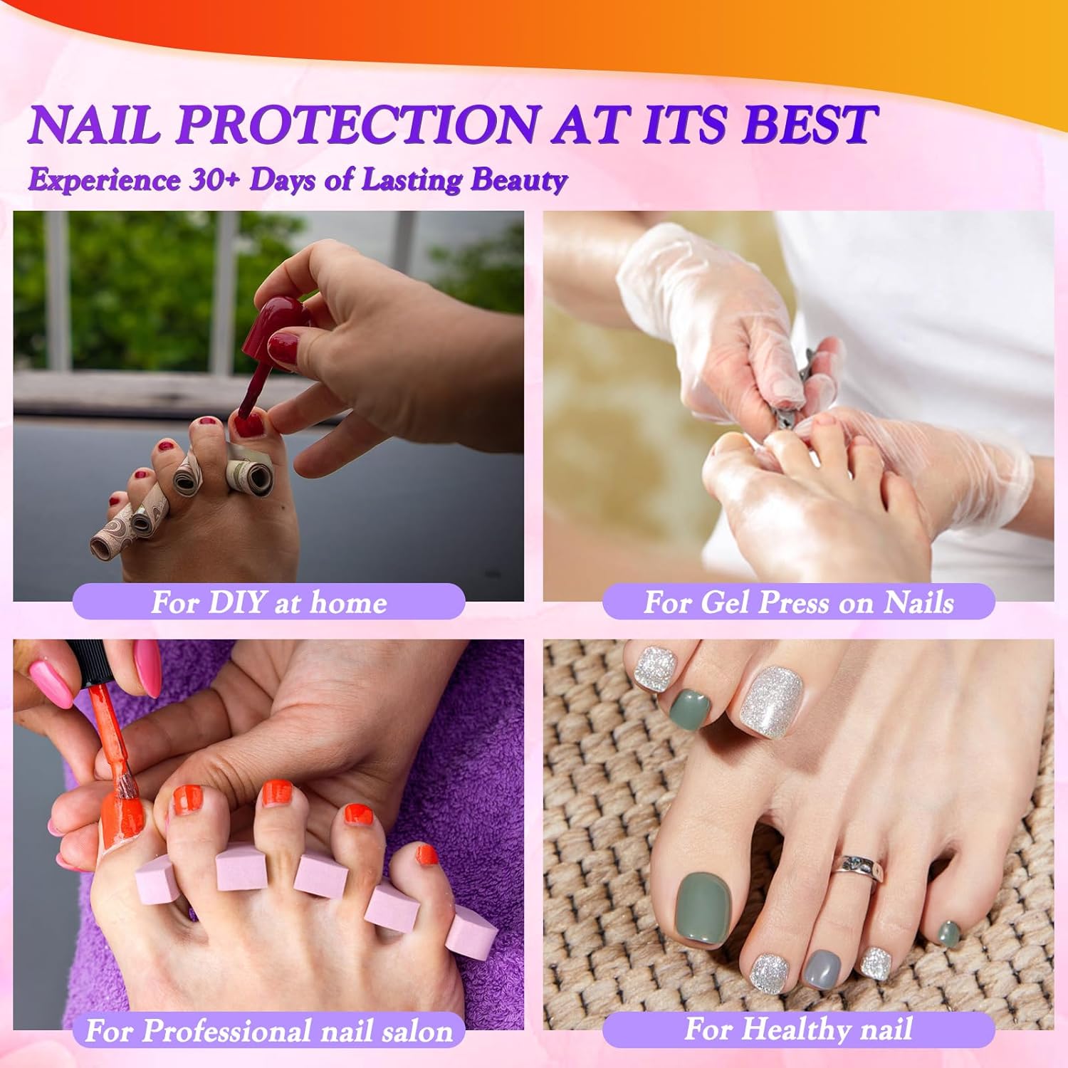SOFT GEL TOE TIPS: Our toenail tips are crafted from premium soft gel material that’s both strong, tough, and flexible. You won’t have to worry about them breaking or cracking easily. The no-crease design also ensures that color is applied evenly, making it a breeze to create your desired nail art effect. Put together with ease and speed, these tips offer a hassle-free nail extension experience